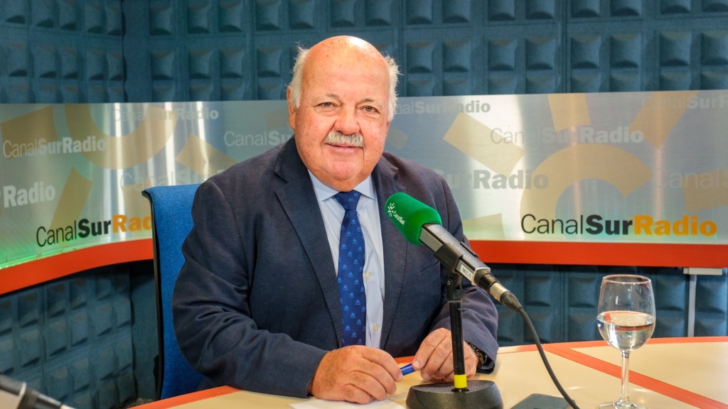El presidente del Parlamento de Andalucía y ex consejero de Salud visita los estudios centrales de la radio pública andaluza para ser entrevistado por el periodista Jesús Vigorra.