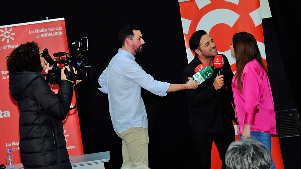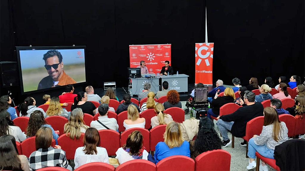 La Sala Circular de la sede central de Canal Sur Radio y Televisión en Sevilla, donde se ubica Canal Fiesta, se ha llenado la tarde de este martes 2 de abril de oyentes de la emisora musical de Andalucía seguidores del cantante, cuyo nuevo tema, "El día que te vayas", ya está en el top50 de Canal Fiesta Radio.