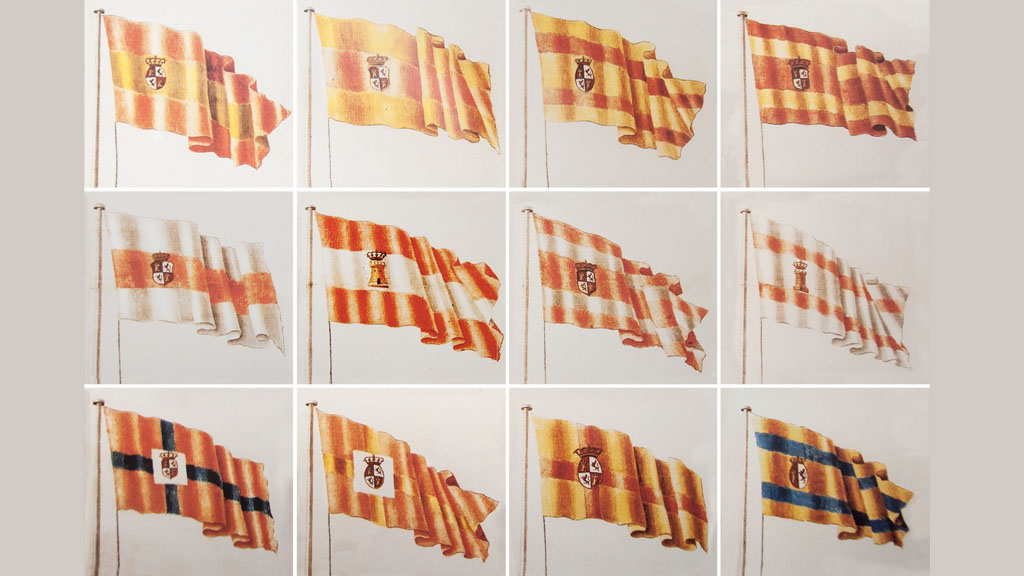 Otro dato curioso de nuestro estandarte representativo son las bandas que, a diferencia de otras banderas, se establecieron horizontales con el fin de ganar visibilidad en el mar. De las dos doce bocetos que se presentan se seleccionaron dos: la que gana es la bandera de guerra, que es la bandera de la Armada Real, y la segunda, se establece como bandera para los buques mercantes, que ha sido representativa de ellos hasta el año 28.