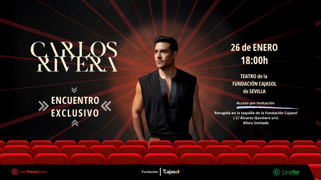 El primer número 1 de Carlos Rivera en Canal Fiesta fue "Fascinación". El último "Mal escrito". Repasaremos su carrera y sabremos todo sobre sus proyectos en el encuentro especial que tendrá lugar el próximo lunes a las 6 de la tarde en el Teatro de la Fundación Cajasol.