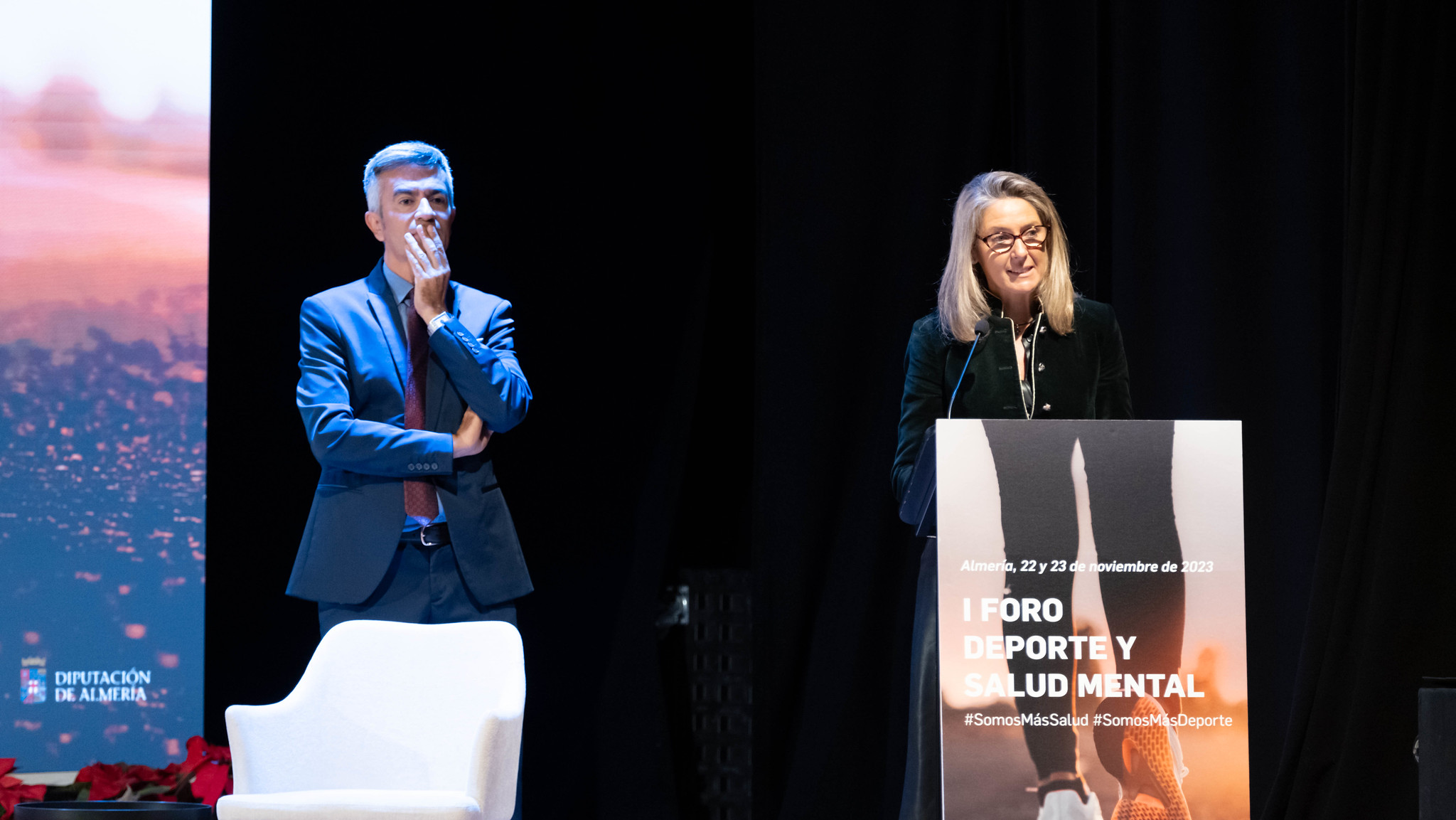 A continuación, Silvia Maraver Ayala, gerente de la Fundación Pública Andaluza para la Integración Social de Personas con Enfermedad Mental (FAISEM), dependiente de la Consejería de Salud y Consumo, ha reflejado “la importancia para FAISEM de la actividad física y de cuidar la salud mental en la sociedad y en los deportistas de alta competición”. Según Maraver, este foro es una “iniciativa pionera que enfoca deporte y salud mental como binomio que se retroalimenta”.