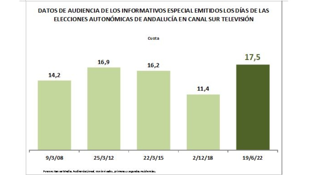El resultado es el más alto alcanzado por un programa de seguimiento electoral de Canal Sur desde el año 2004, y representa por tanto el mejor índice de audiencia de las últimas cinco elecciones autonómicas andaluzas.