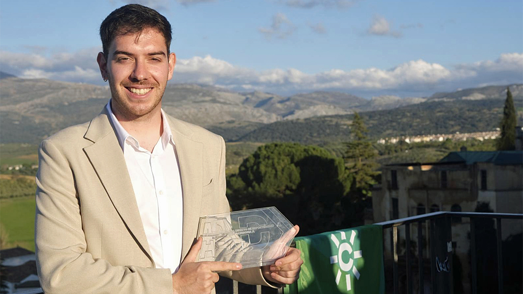 Juan Barriga López, alumno del Máster de Periodismo Multimedia de la Universidad de Granada, ha recibido el galardón de manos de Modesto Barragán, director y presentador de AD, y la alcaldesa de Ronda, María Paz Fernández.