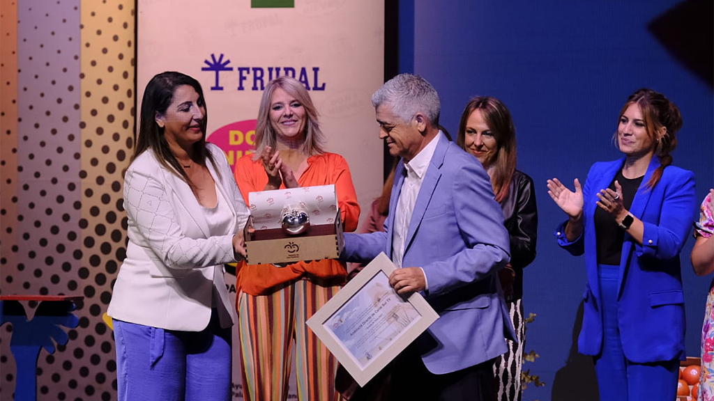 El premio de la Asociación de Productores del Tomate de la localidad sevillana, que han recogido el director de "Andalucía Directo" Modesto Barragán y Paz Santana, copresentadora y editora del espacio, reconoce al programa de Canal Sur por los 25 años en antena.