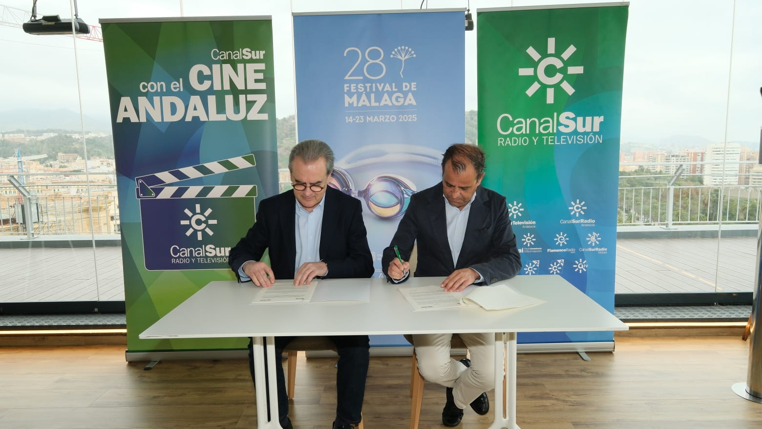 La mañana de este viernes 7 de marzo, Juande Mellado, director general de RTVA, y Juan Antonio Vigar, director del Festival de Málaga, han suscrito un convenio de colaboración por el que se entregará el Premio Talento Andaluz al actor algecireño Víctor Clavijo y se retransmitirán la Gala de Inauguración y la Gala de Clausura de la muestra malagueña.