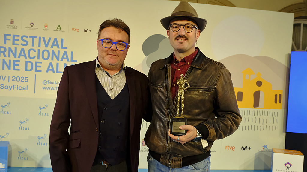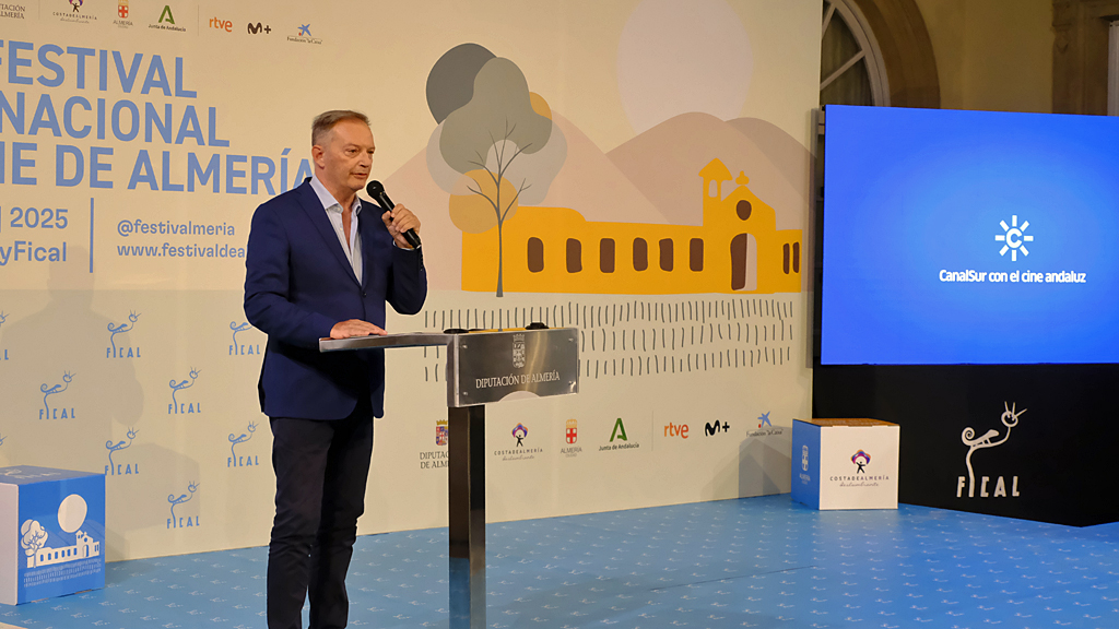 Almería se ha vestido de gala este lunes, 17 de noviembre, con la entrega de premios del Festival Internacional de Cine, FICAL2025. El director territorial de Canal Sur Radio y Televisión en Almería, Salva R. Moya, ha entregado el Premio CSRTV al actor Alex O’Dogherty. El acto ha tenido lugar en el Patio de Luces de la Diputación provincial y ha contado con la participación de la Diputada de Cultura, Almudena Morales, y el director del certamen, Enrique Iznaola.
