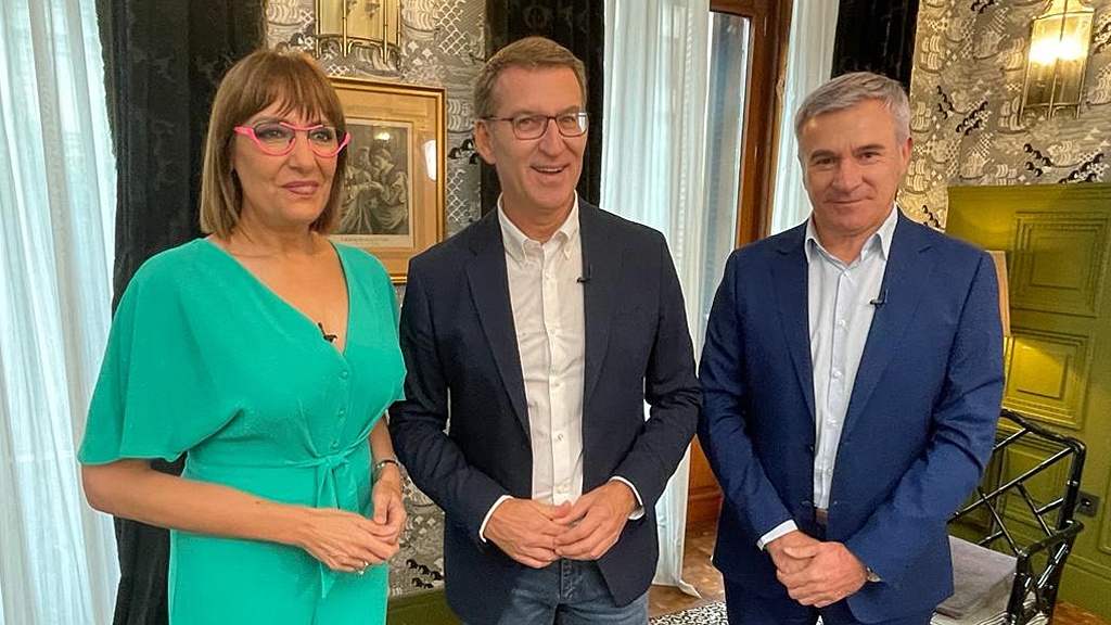 Blanca Rodríguez y Fernando García han entrevistado este jueves a Alberto Núñez Feijóo, candidato del PP a la presidencia del Gobierno.