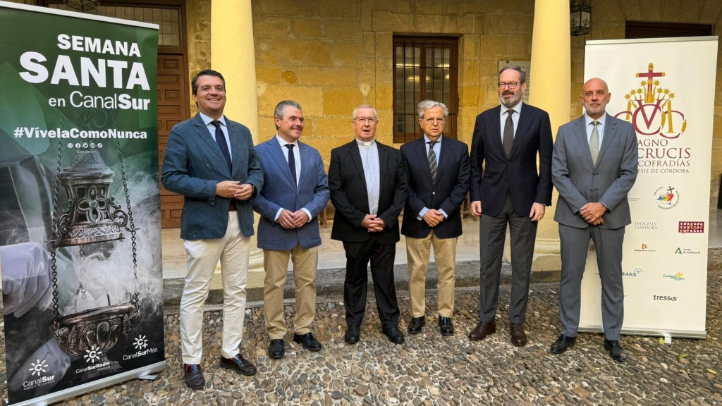 La presentación de todo ello se ha realizado la mañana de este miércoles, 1 de octubre, en un acto celebrado en la sala de prensa del Obispado de Córdoba, al que han asistido Pedro García Vázquez, director territorial de Canal Sur en Córdoba; José María Bellido, alcalde de Córdoba; Salvador Fuentes, presidente de la Diputación; Adolfo Molina, delegado de la Junta en Córdoba, Manuel Murillo, presidente de la Agrupación de Cofradías de Córdoba y Pedro Soldado, representante del Cabildo y del Obispado.