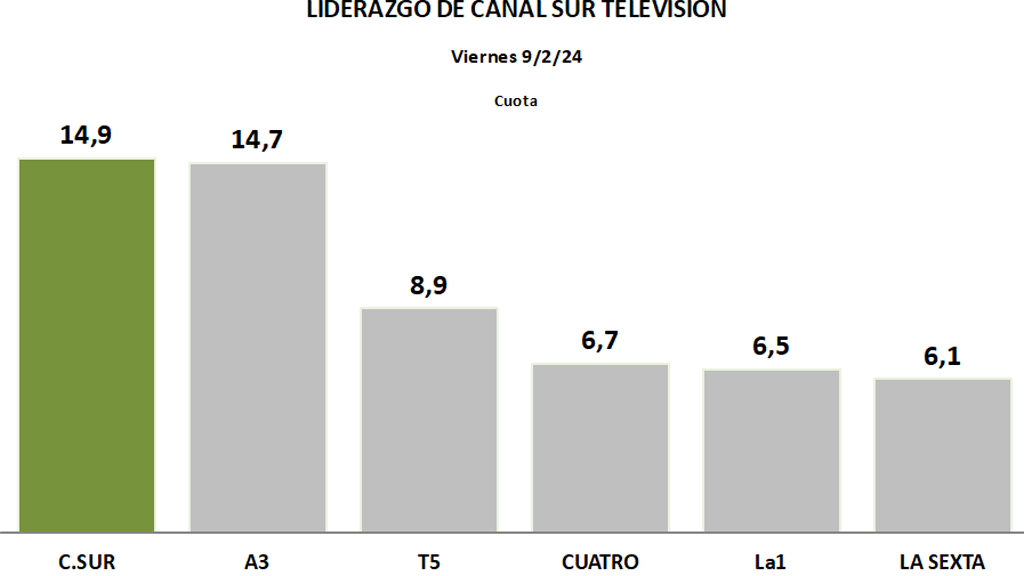 Con estos datos, la televisión pública andaluza fue líder de audiencia en Andalucía y entre todas las autonómicas este viernes 9 de febrero.
