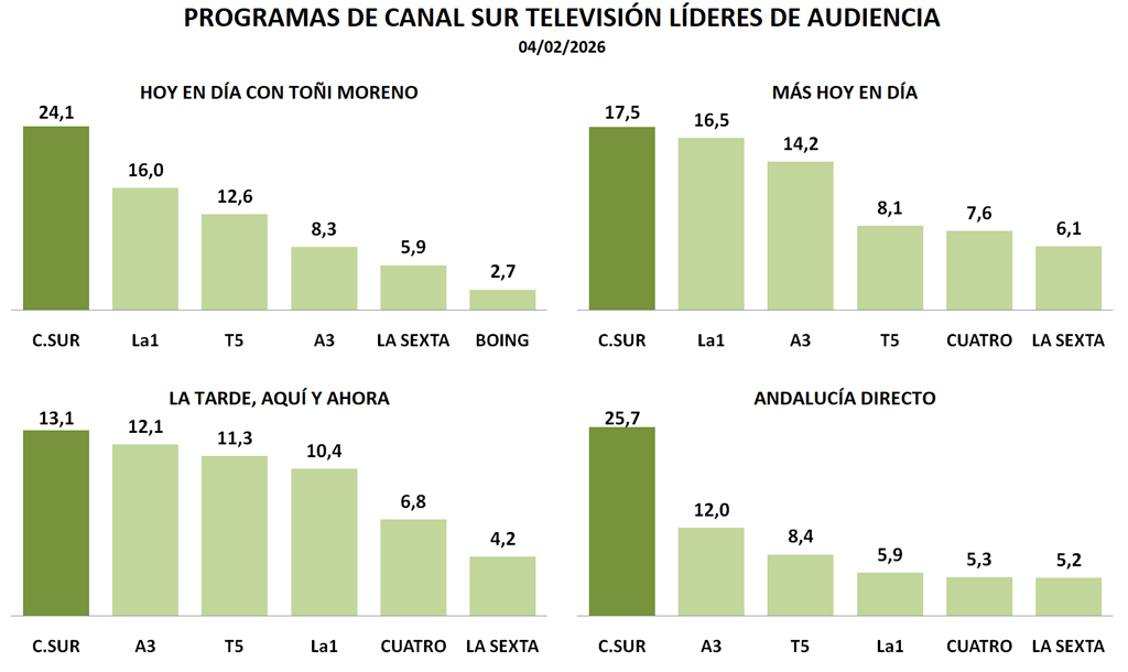 Un total de 2.640.000 andaluces y andaluzas sintonizaron este miércoles 4 de febrero en algún momento con el canal de televisión público andaluz.