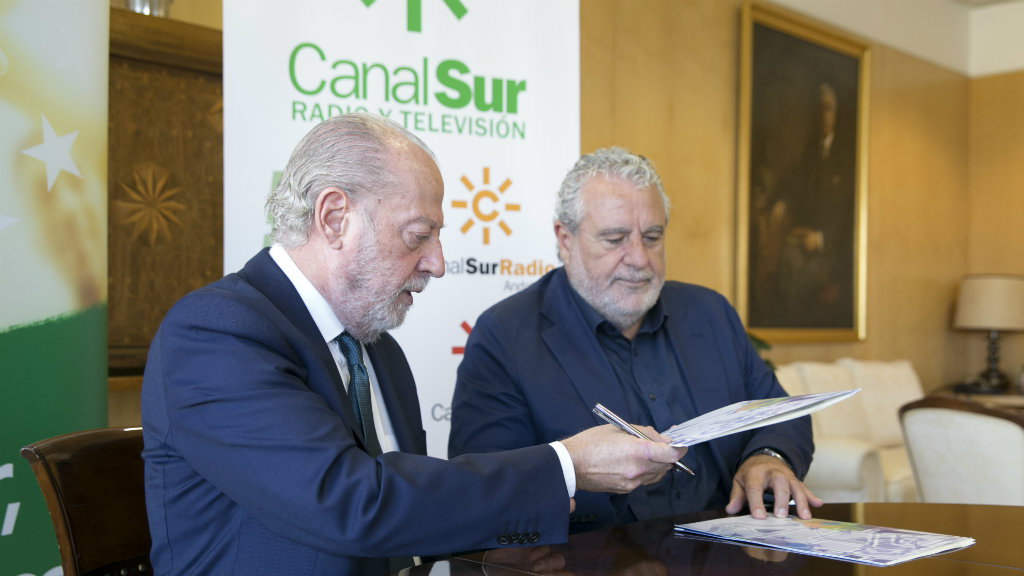 El presidente de la FAMP se congratuló de la firma de este convenio, ya que “si se sabe algo de los pueblos andaluces es gracias a Canal Sur”.