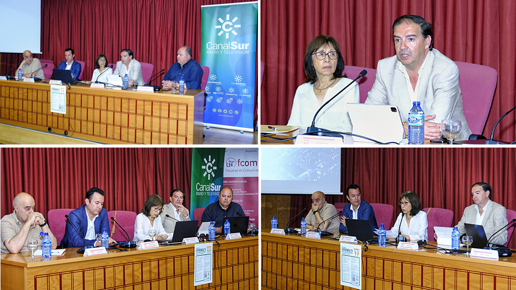 La mesa inaugural, que ha comenzado a las 9 de la mañana, ha estado integrada por José Luis Navarrete, Decano de la FCOM; Carmen Torres Palmero, directora de los Servicios Informativos de Canal Sur TV; Isaac López Redondo, profesor de la FCOM y director del Grupo de Investigación NAPETEC; y Servando Massia, productor de Canal Sur Televisión y director del programa “Experiencia TV”.
