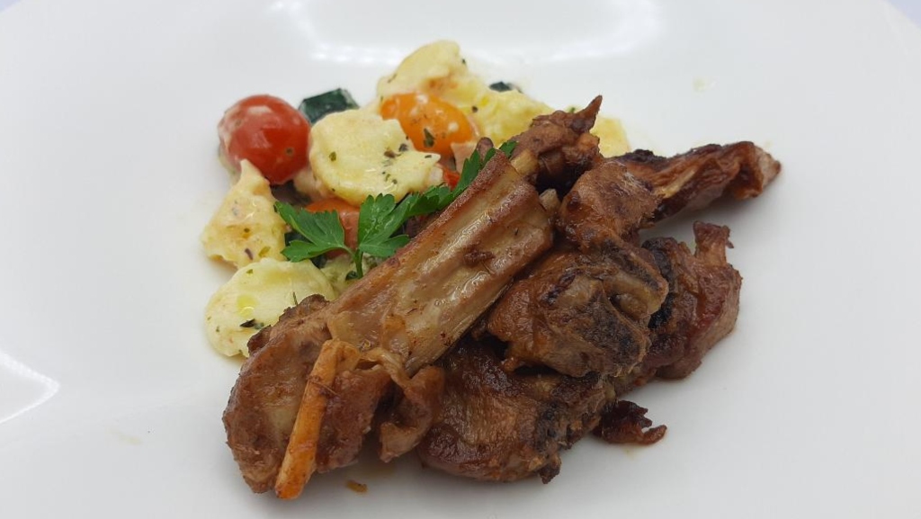 Para preparar el menú de este miércoles, Enrique Sánchez Cómetelo utilizará el choto troceado con ajo, patatas, vino blanco, caldo de carne, soja y pimentón. Además de añadirle los ñoquis de patata y el tomate cherry.