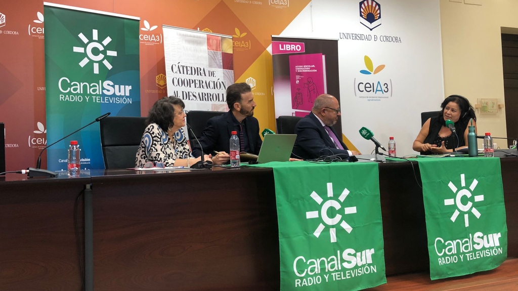 El programa "Canal Sur Mediodía, Córdoba", que presenta Toñi Merino, se ha trasladado este miércoles 5 de octubre al Rectorado de la Universidad para hablar con la Cátedra de Cooperación al Desarrollo, que ha presentado parte del trabajo realizado en los últimos cinco años en Ecuador. Una investigación que ahonda en el ciberacoso y en la forma de mejorar la calidad de vida de los niños y jóvenes de este país y que ha estado dirigido por el director de la Cátedra, Antonio Jesús Rodríguez Hidalgo. Un estudio en el que han participado más de 17.000 estudiantes y que será presentado en breve al Gobierno ecuatoriano para su valoración y posible aplicación.