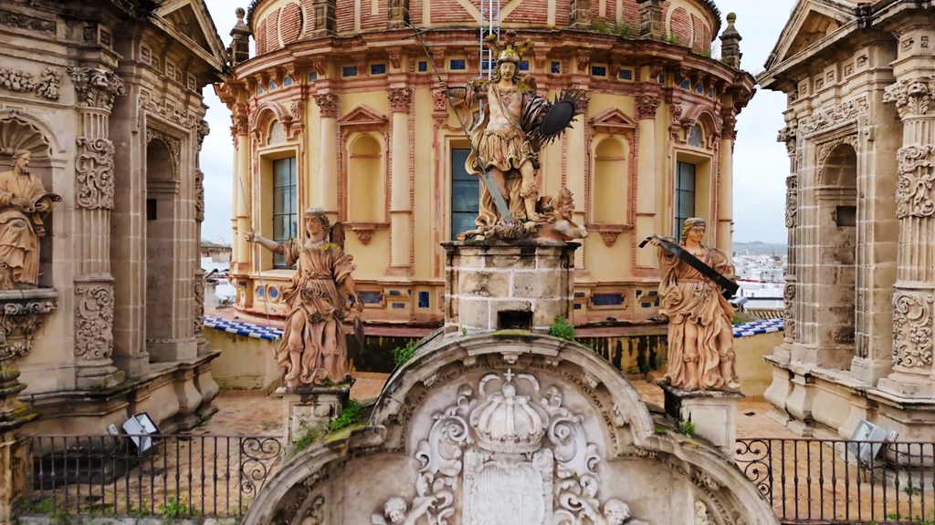 El programa comienza su recorrido en Granada, en los impresionantes espacios del Monasterio de La Cartuja, una obra maestra que fue evolucionando durante tres siglos y cuyo esplendor barroco se revela en toda su potencia gracias a impactantes recreaciones digitales. La visita continúa por el Palacio de la Madraza, un edificio que resume siglos de transformación cultural, desde su origen islámico hasta su conversión en símbolo del refinamiento barroco.