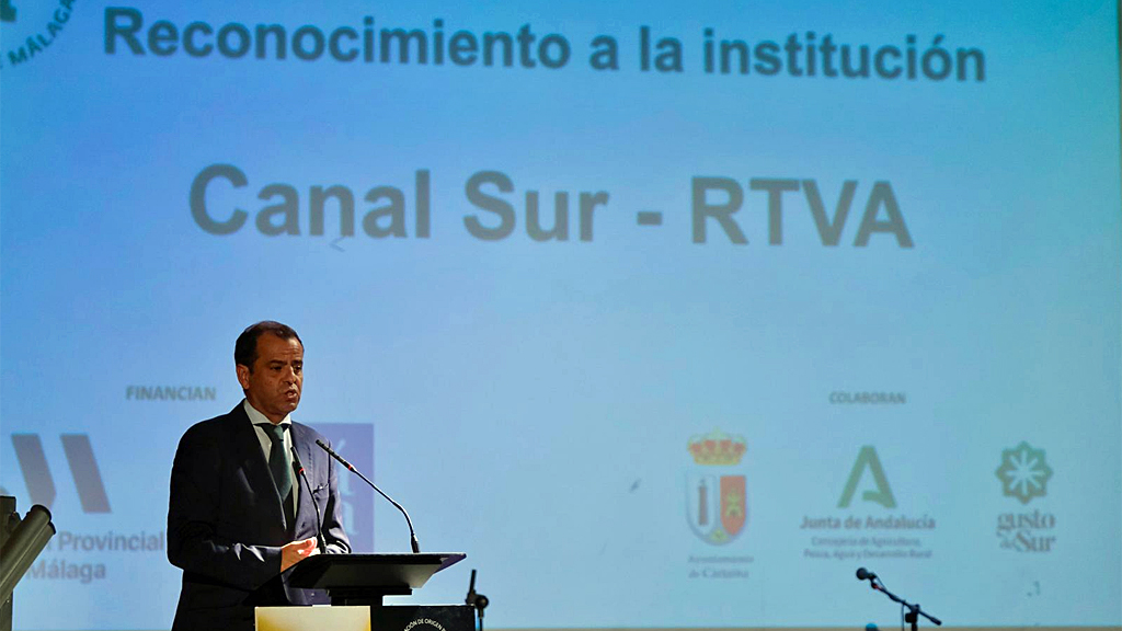 Ha recogido hoy el premio en Cártama Juande Mellado, director general de Canal Sur Radio y Televisión, que ha estado acompañado por Juan Vargas, director de Innovación, Negocio y Comunicación de Radio y Televisión de Andalucía (RTVA).