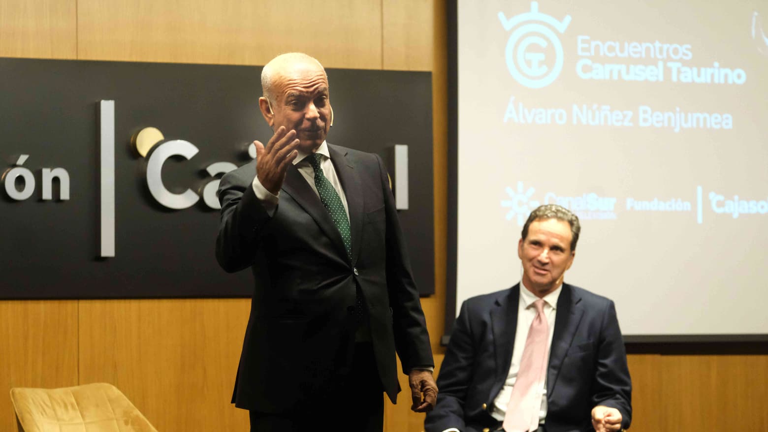 El ciclo de “Encuentros Carrusel Taurino" ha tenido este jueves, 30 de octubre, como invitado estrella al ganadero Álvaro Núñez del Cuvillo Benjumea, con el que hemos compartido la historia de un sabio que volvió a empezar. Se trata de espacios que promueven el diálogo y la reflexión en torno al mundo de la tauromaquia.