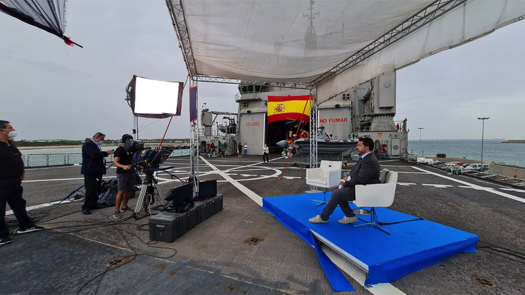 Los servicios informativos de Canal Sur han emitido desde la base naval de Rota el informativo provincial. Además de la actualidad de la provincia, han informado de la actividad y la importancia para la zona de la base.