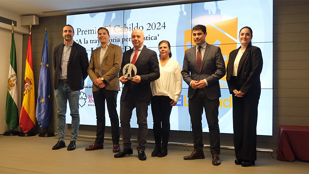 Ha recogido el galardón esta tarde en la Fundación Caja Rural del Sur Fran López de Paz, director de “El Llamador” acompañado por su equipo.