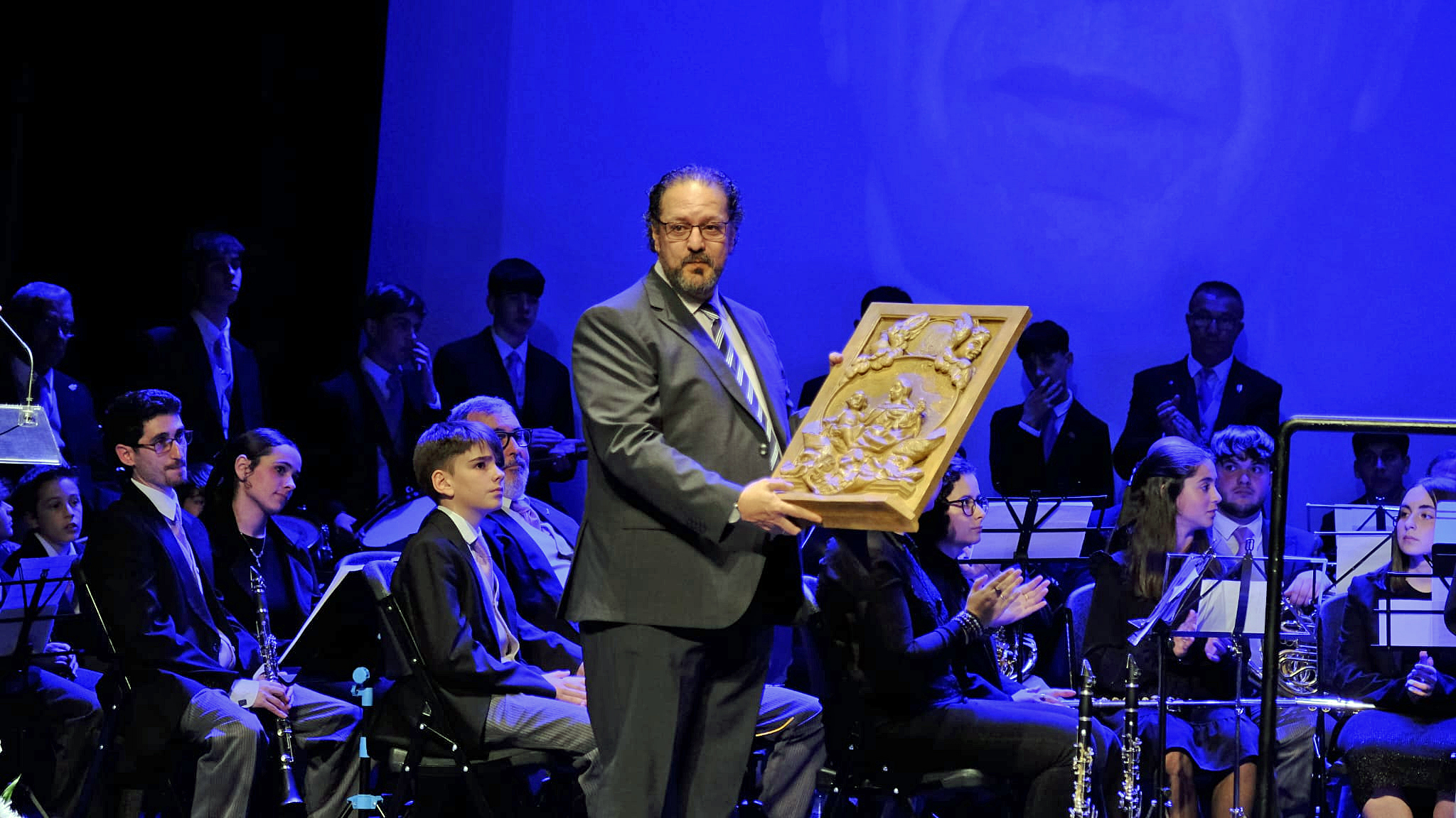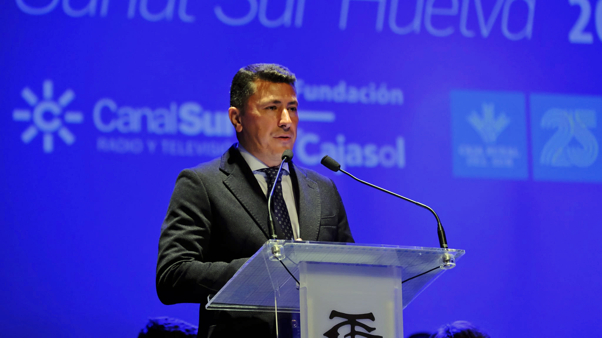 En la gala conducida por Manuel Jesús Montes también han estado presentes también Isabel Cabrera, directora adjunta de CSRTV; Juan Vargas, director de Innovación, Negocio y Comunicación de RTVA; y Pilar Miranda, alcaldesa de Huelva, que ha tenido palabras de elogio para el homenajeado, "porque trabajó por la Semana Santa de Huelva cuando más difícil era y cuando no era lo que es en la actualidad".