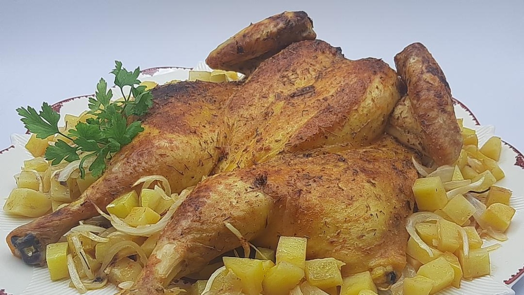 Los espectadores aprenderán a cocinar una receta de pollo asado abierto en mariposa, aliñado previamente y sobre una cama de patatas, cebollitas y ajo. Para acompañar, la ensalada con flores comestibles.