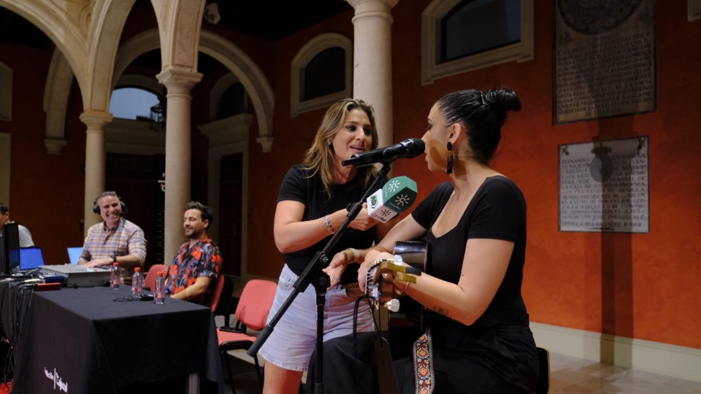 José Antonio Domínguez estuvo acompañado por oyentes, colaboradores del programa y los artistas Funambulista María Peláe.
