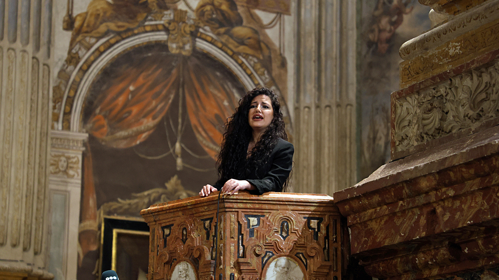 La directora adjunta de Canal Sur Radio y Televisión (CSRTV), Isabel Cabrera, ha entregado el galardón a Esperanza Garrido Pérez como reconocimiento a la saetera mejor clasificada por la puntuación del jurado al término de la final del concurso, que ha tenido como escenario el Real Monasterio de San Jerónimo. Este reconocimiento premia la contribución femenina a este cante popular que cobra protagonismo en Semana Santa.