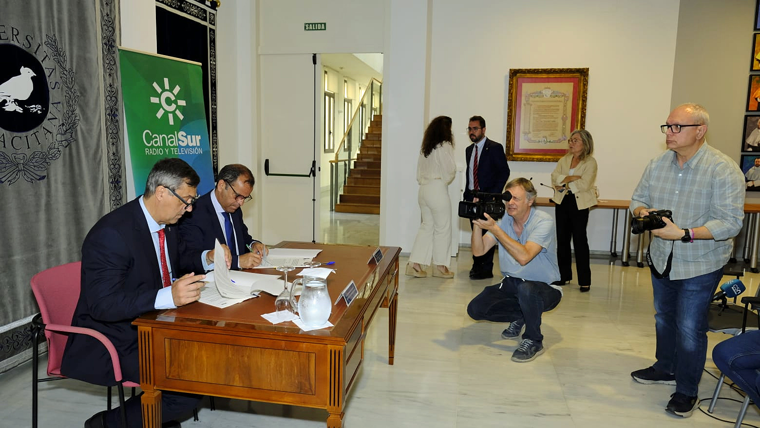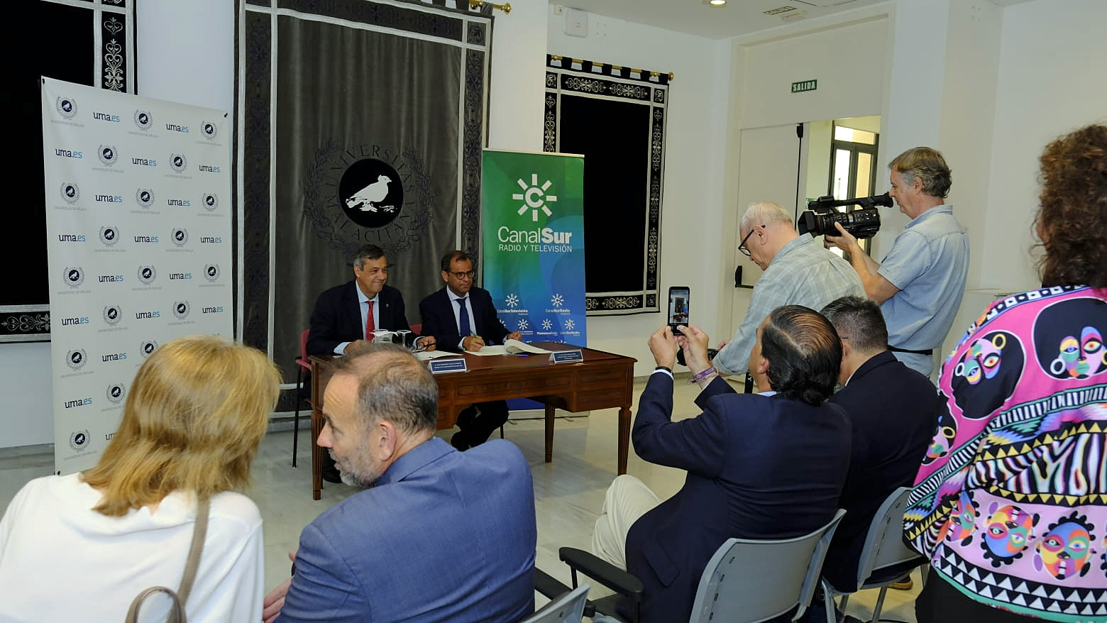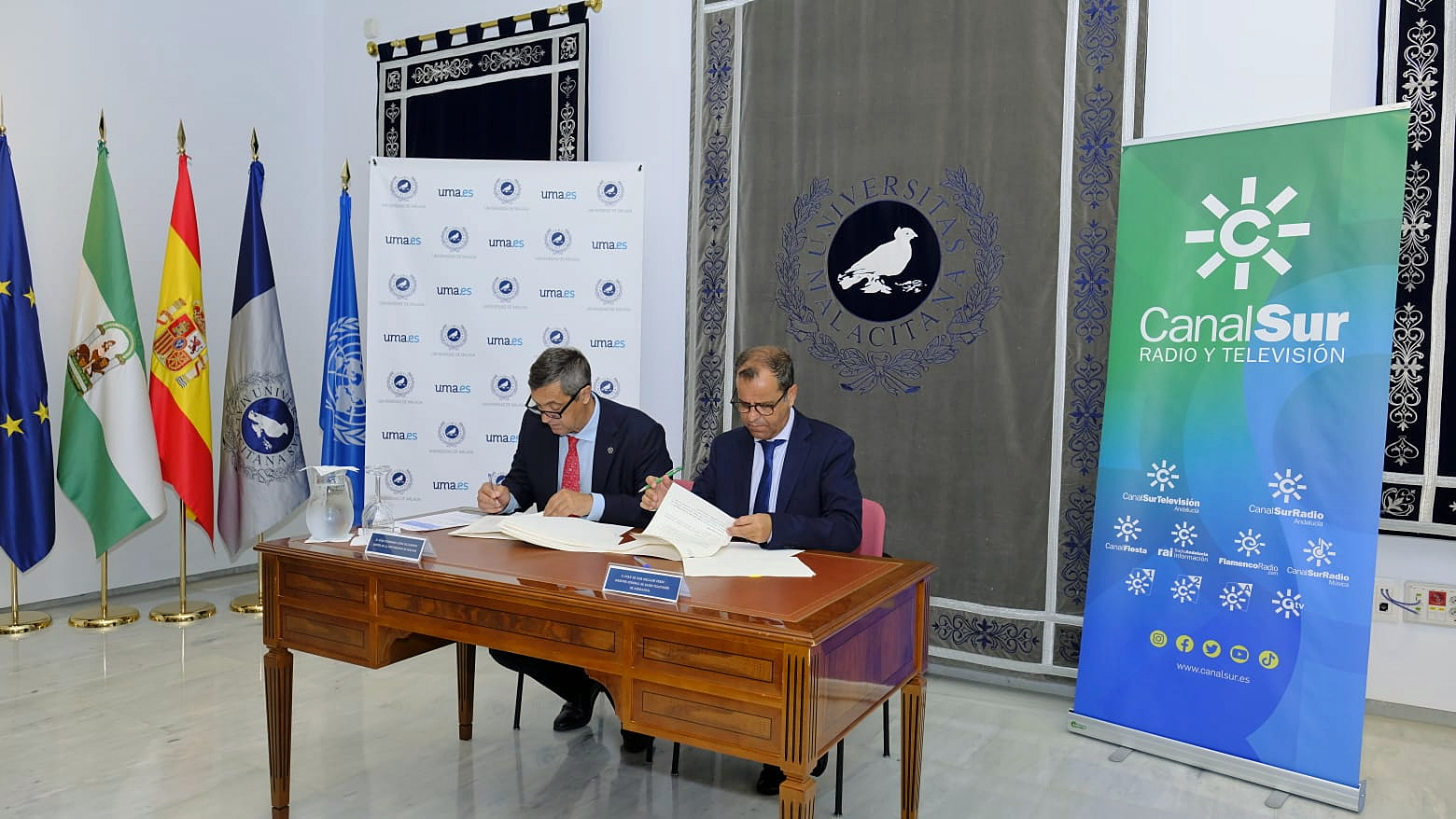 La Sala de Rectores del Rectorado de la citada Universidad malagueña, ha sido el lugar elegido para la firma que ha contado con la presencia del director general de RTVA, Juande Mellado, y el rector de la UMA, Juan Teodomiro López.