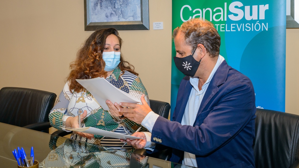 El director general de RTVA, Juande Mellado, y la presidenta de Foro Marketing Sevilla, Rocío Tornay, han suscrito un acuerdo que abre a la radio televisión andaluza un nuevo canal de comunicación con el sector profesional y universitario donde comunicar proyectos de la empresa y poner en valor la marca Canal Sur en públicos jóvenes.