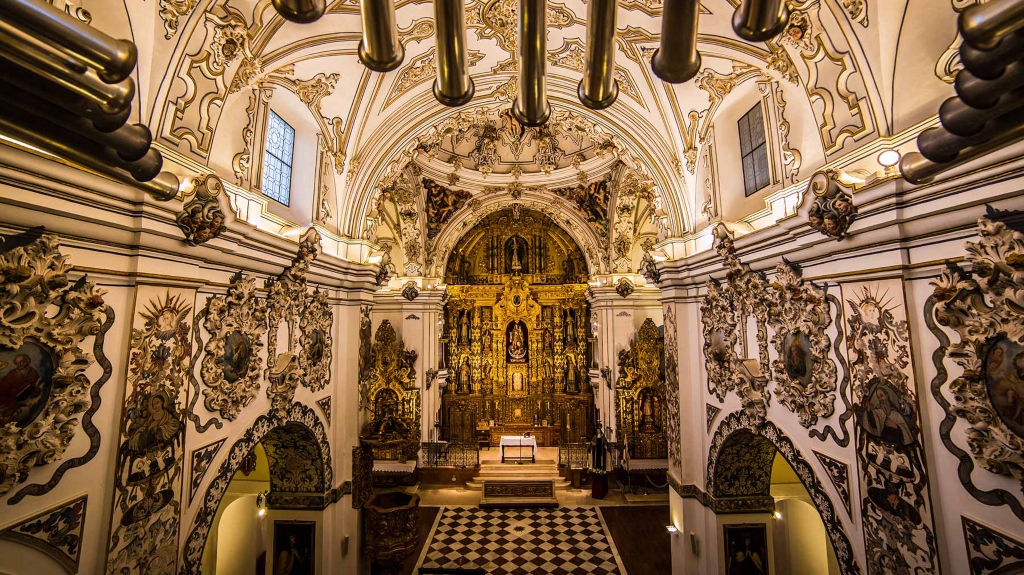 Esta iglesia, que perteneció al convento de los Padres Carmelitas Descalzos, fue totalmente transformada a lo largo del siglo XVIII, cuando se le añadió la rica decoración de yeserías policromadas y pinturas murales, incorporando además abundantes motivos de rocalla. Las esculturas y carpintería, junto con el órgano del siglo XVIII, la hacen símbolo del barroco.