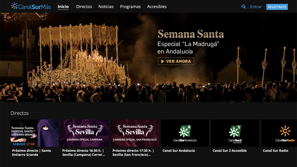 De forma paralela desde CanalSur Más se incluyen las retransmisiones especiales que forman parte de la cobertura lineal ya anunciada de televisión y radio y se pone a disposición de los usuarios una selección de retransmisiones históricas de la Semana Santa de Andalucía, saetas, conciertos, documentales, los videos de las leyendas de la Semana Santa de Andalucía desarrollados con IA... en definitiva una recopilación imprescindible para los cofrades.