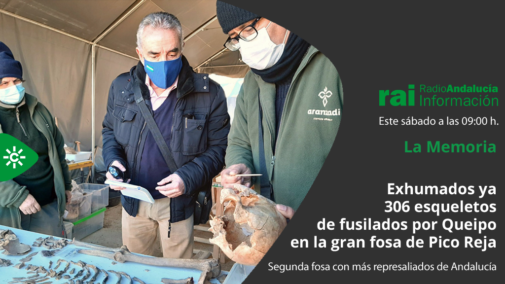 “La Memoria” de Radio Andalucía Información inicia este sábado, 23 de enero, su emisión con una serie de reportajes dedicados a las exhumaciones de víctimas del franquismo, en la gran fosa común de Pico Reja del cementerio sevillano. Tras los trabajos de localización y delimitación de las grandes fosas comunes, ahora se cumple un año del inicio de las excavaciones propiamente dichas y podría decirse que casi un tercio de los esqueletos previstos han aflorado ya a la superficie como consecuencia del trabajo detallado y exhaustivo, que realizan el grupo especializado de técnicos de la sociedad Aranzadi, que dirige el arqueólogo andaluz Juan Manuel Guijo.