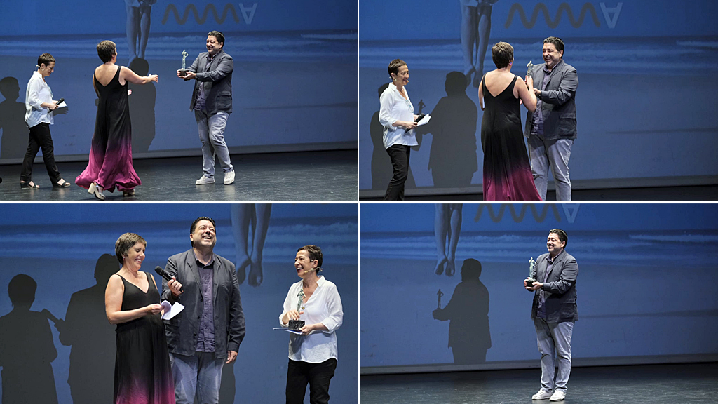 Álvarez-Ossorio ha recibido el galardón de manos del director territorial de la RTVA en Cádiz, Javier Benítez, que ha estado acompañado en el acto por Paz Piñar, responsable de Cine de Canal Sur, la tarde-noche de este sábado 16 de septiembre, durante el transcurso la gala de clausura de este Festival de Cine gaditano, celebrada en el Teatro Moderno de Chiclana.