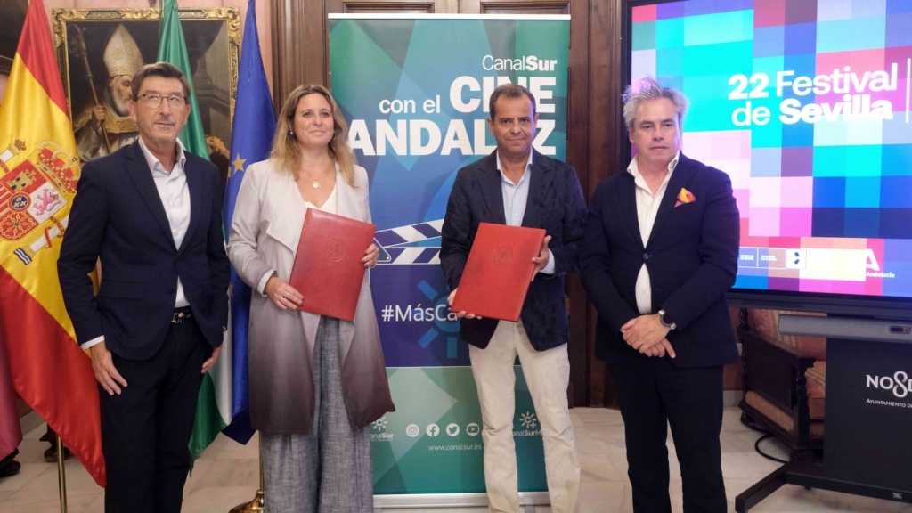 El acto ha contado con la asistencia, además, de Juan Vargas, director de Innovación, Negocio y Comunicación de RTVA; Leonardo Sardiña, responsable del departamento de Cine de RTVA; y el director del Festival, Manuel Cristóbal, que ha manifestado que “este acuerdo es una muestra más de la apuesta del Festival por que el cine andaluz juegue en casa, presente transversalmente en la mayoría de nuestras secciones, con producciones llenas de talento, muchas producidas por la RTVA, que buscan su estreno en Sevilla”.