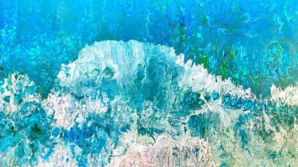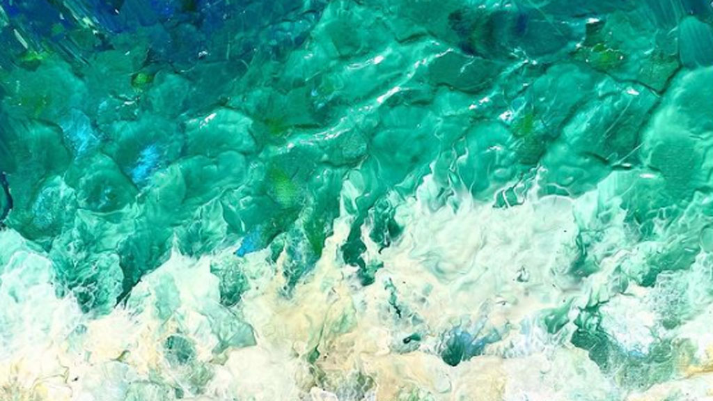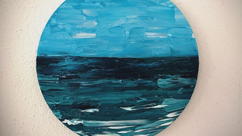 Es cuando piensa en qué era lo que le podía trasmitir esa sensación y recurre al vaivén de las olas, sus colores, su sonido…, y “quise plasmar ese sentimiento sobre lienzo”. Es así como surge esta colección, una serie de cuadros inspirados en el mar realizados de una forma abstracta.