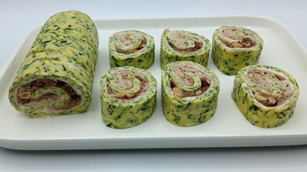 El chef Enrique Sánchez elabora este jueves un rulo cuya base es una lámina horneada de calabacín con huevo, parmesano y perejil. Se rellena con mayonesa, jamón cocido, cebolla caramelizada, atún, tomates secos, almendras y pasas. Tras reposar en frío, el rulo queda firme y listo para cortar.