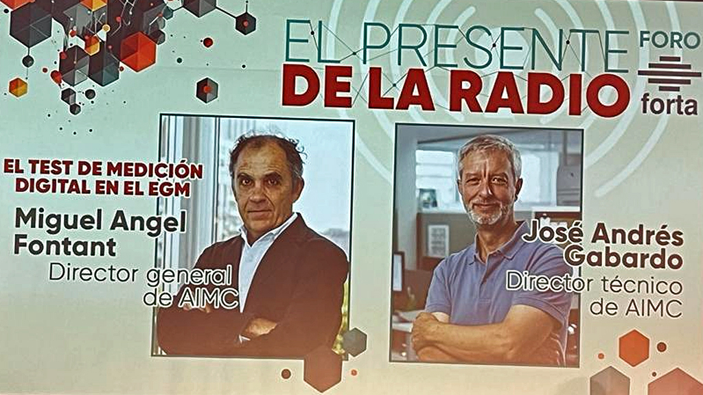 Miguel Ángel Fontán y José Andrés Gabarro, director general y director técnico de AIMC, han abordado el tema de cierre del Foro que se ha celebrado en un momento sustancial para la industria radiofónica, con un aumento de la audiencia en los últimos años, tal y como señalan los datos de la Tercera Ola del EGM de 2022, que apunta a que más de 31 millones de españoles escuchan la radio con regularidad.