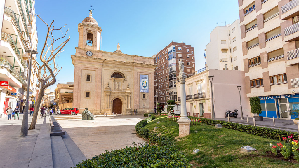 La actual iglesia, de estilo neoclásico, se construyó a finales del siglo XVII. La bendición de su primera piedra tuvo lugar el 28 de julio de 1673. Antiguamente daba servicio a la población de extramuros de Almería y su jurisdicción llegaba hasta el Cabo de Gata. El templo sufrió un incendio durante la Guerra Civil, que afectó a muchas imágenes y al propio edificio.