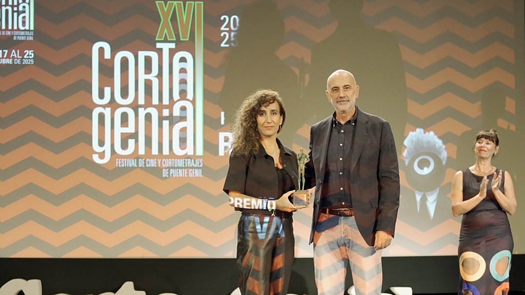 El galardón de reconocimiento de Canal Sur ha sido entregado la noche de hoy sábado, 25 de octubre, en la gala de clausura de la XVI Edición del Festival de Cine y Cortometraje de Puente Genil, por Pedro García Vázquez, director territorial de Radio y Televisión de Andalucía en Córdoba.