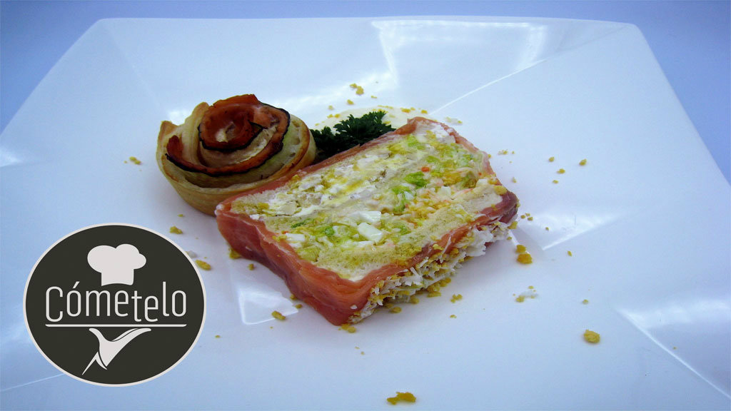 El chef Enrique Sánchez propone este martes un pastel frío para esta Navidad hecho con salmón ahumado, al que le incorporamos surimi o palitos de cangrejo rallados, huevos duros picados, cogollos pequeños picados y unas cucharadas de mayonesa Ybarra.