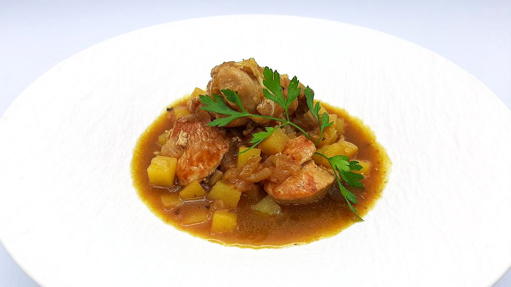 El espacio de cocina “Cómetelo” ha preparado para este jueves un menú completo. De primero, aliño de garbanzos, atún, pimientos del piquillo, aguacate, cebolla, aceituna y huevo cocido. De segundo, pollo al whisky con patatas, cebolla, ajos y una salsa muy jugosa. De aperitivo, unos garbanzos tostados.
