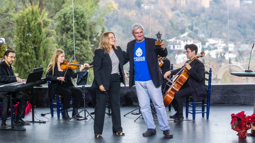 Pozos Sin Fronteras de Málaga. Desde hace más de 22 años, esta ONG malagueña construye pozos en los lugares más vulnerables y apartados, formando y concienciando a sus vecinos en el uso responsable y sostenible de los recursos hídricos. Javier San Emeterio, presidente de Pozos sin Fronteras, ha recibido el reconocimiento de manos de la directora territorial de RTVA en Málaga, Montse Naharro.