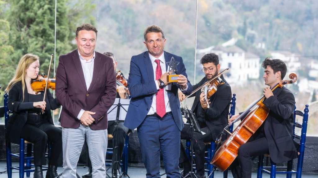 Proyecto “Patio del Amor”, impulsado en el Hospital Juan Ramón Jiménez por la Hermandad de las Tres Caídas de Huelva. Por la creación de un espacio de juegos al aire libre diseñado con temática de playa y marismas onubenses destinado a los menores ingresados, que pueden conectar con su entorno, divertirse, aprender y aliviar la ansiedad que conlleva la hospitalización, en un entorno inclusivo, seguro y muy humanizado. El director territorial de RTVA en Huelva, Norberto Javier, ha sido el encargado de entregar el premio a Iván Regueira, presidente de “El Patio del Amor”.