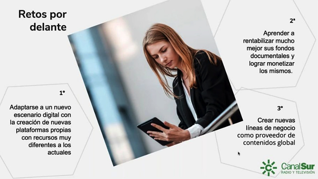 En este sentido, Juanma Blanco Poley, jefe de Canal Sur Media, ha participado como ponente en el marco de “expertos que inspiran para crear futuro” (con la ponencia “Sector Audiovisual de Andalucía”), en el que también han participado representantes, entre otros, de 3DALIA, empresa de diseño y desarrollo de producto; de OnTech Innovation, Cluster de empresas de Economía Digital de Andalucía; o de DANTIA Tecnología, compañía del Sector de la Tecnología de la Información y Comunicaciones.