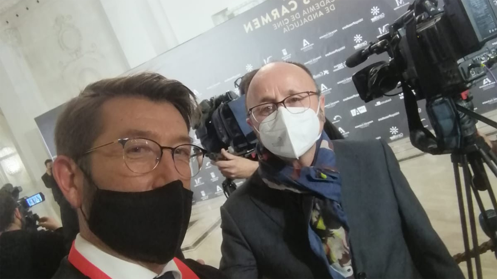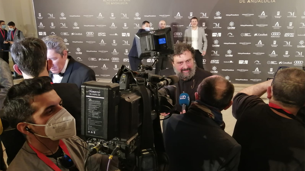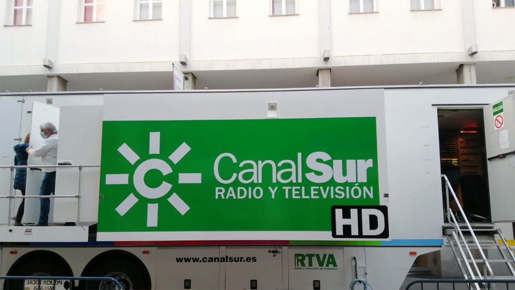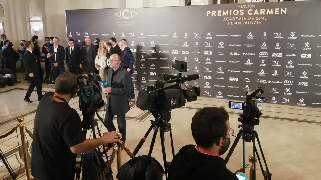 Gran despliegue humano y técnico de Canal Sur Radio y Televisión para cubrir y emitir los Premios Carmen, unidades móviles y reporteros de radio y tele a pie de alfombra roja.