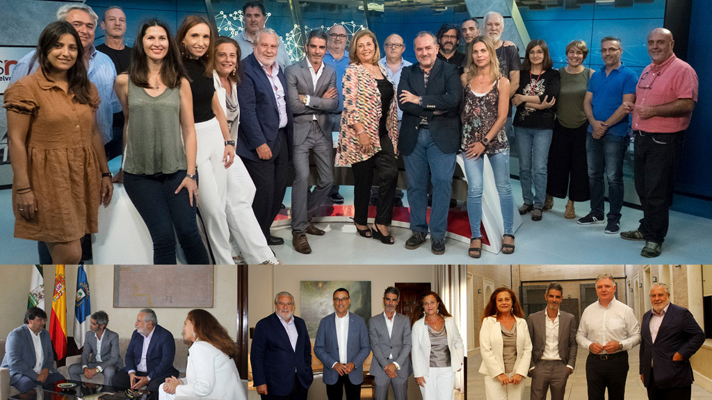 Rafael Adamuz toma el relevo a Inmaculada González, en un acto al que han asistido el director de Canal Sur Radio Televisión, Joaquín Durán, y la directora operativa de Canal Sur Radio y Televisión, Pilar Vergara. Los directivos del ente público han realizado una visita institucional a las autoridades de Huelva.