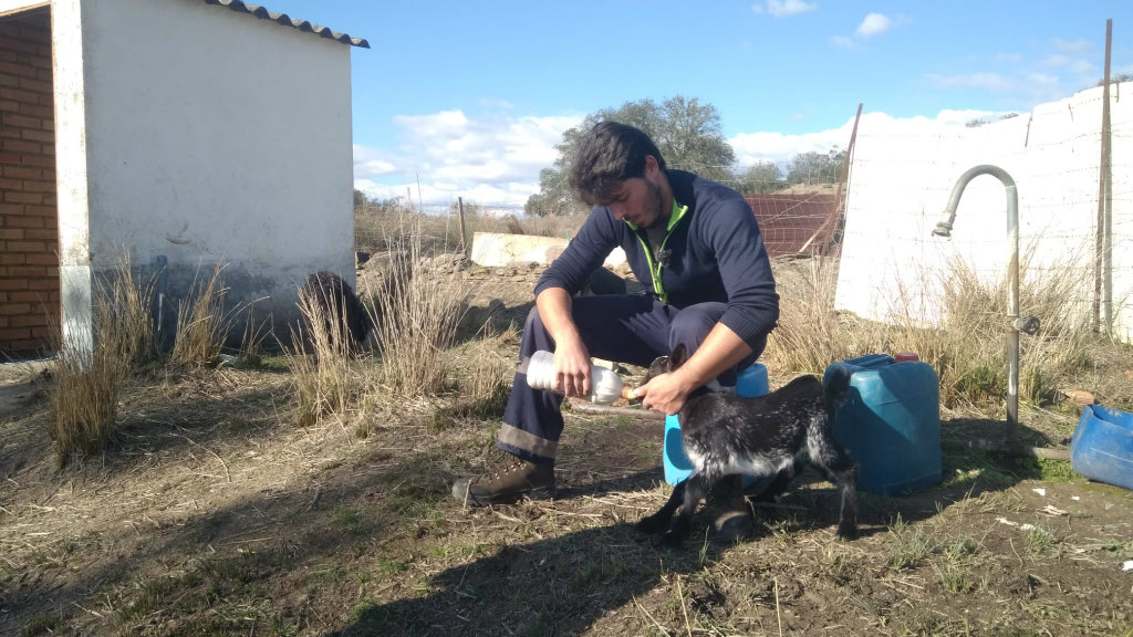 La explotación del padre tiene 25 hectáreas de encinas y algunos alcornoques en donde hay alrededor de 40 cabras, gallinas, un caballo y cuatro perros que le hacen compañía.