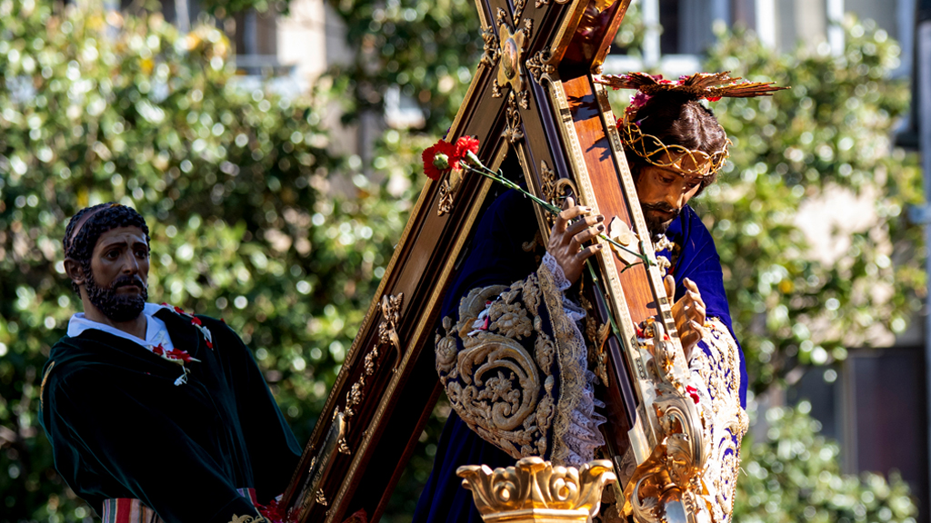 Desde el levante andaluz, la Soledad, la Señora de Almería, será una de las grandes protagonistas de la retransmisión, arropada por las incesantes saetas que acompañan su caminar y convierten su paso en uno de los momentos más emocionantes del Viernes Santo almeriense. En Arcos de la Frontera, las calles imposibles del casco histórico pondrán a prueba a los costaleros de la Virgen de la Soledad, en un pueblo donde hasta el Niño Jesús toma su cruz y donde cada rincón parece hecho para agrandar el dramatismo y la belleza de la jornada. En Priego de Córdoba acompañaremos a dos joyas de la saga barroca de los Mora, la Virgen de las Angustias y la Virgen de la Soledad, en una cita marcada por la excelencia artística y la hondura devocional.
