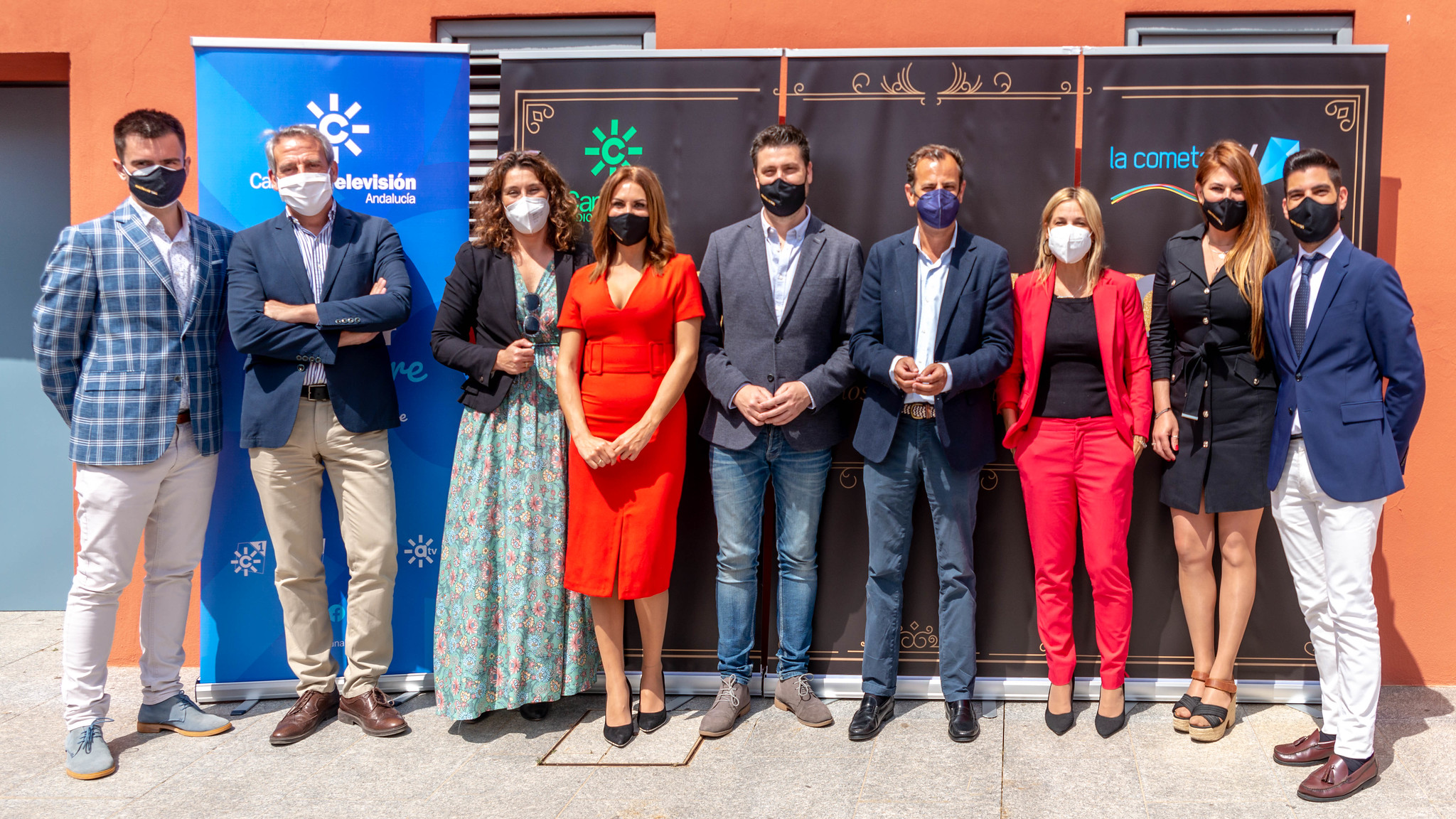El director general de Radio Televisión de Andalucía, Juande Mellado, acompañado de Manolo Sarria y los reporteros Javi García, Eloy Moreno, Cristina López y Mónica Martínez, ha presentado este jueves en el Teatro El Tronío de Gines (Sevilla) la nueva temporada del docu-show "Centenarios”. El espacio tiene como protagonistas a personas que han cumplido los 100 años de vida o van camino de ello y que son testimonio vivo de nuestra historia más reciente.