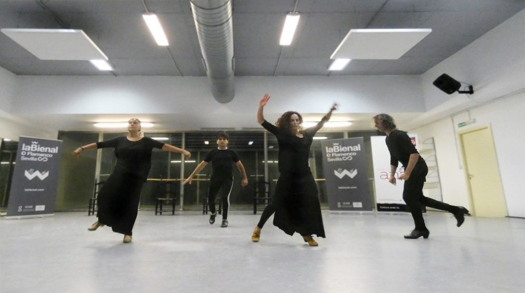 En “El salón de baile”, la creadora Rafaela Carrasco evoca los lugares y formatos que siguieron históricamente a las exhibiciones públicas, destinadas sobre todo para un público extranjero, que se hacían en las academias de baile de los grandes maestros de la época. Estos establecimientos eran lugares de ensayo abiertos al público, en el que convivieron diferentes géneros, estilos y distintas músicas e instrumentaciones, contribuyendo a la creación y evolución del cante y el baile flamencos. Para ello, la reconocida bailaora y coreógrafa se ha rodeado de un elenco de auténtico lujo, compuesto por los bailaores Rubén Olmo, Tamara López, Javier Barón y David Coria. Junto a la Bienal de Flamenco, este montaje está coproducido por la Biennale d’Art Flamenco de Chaillot en París, en cuya próxima edición se presentará después de su estreno absoluto en Sevilla.
